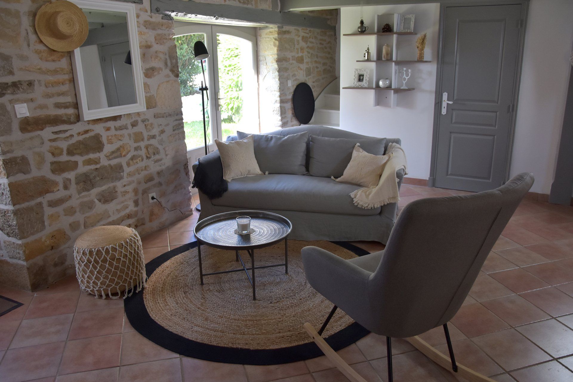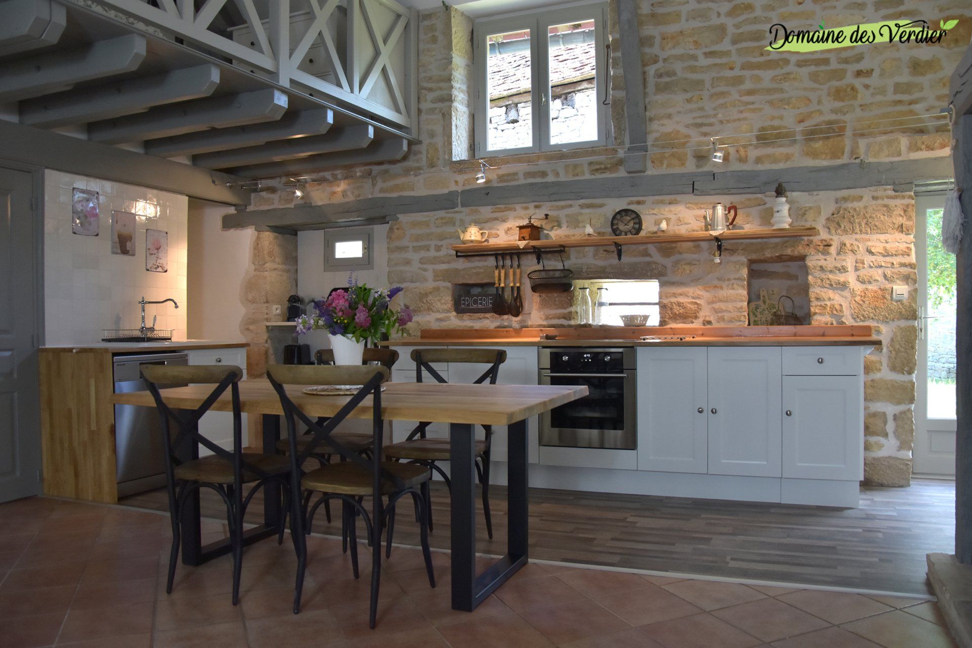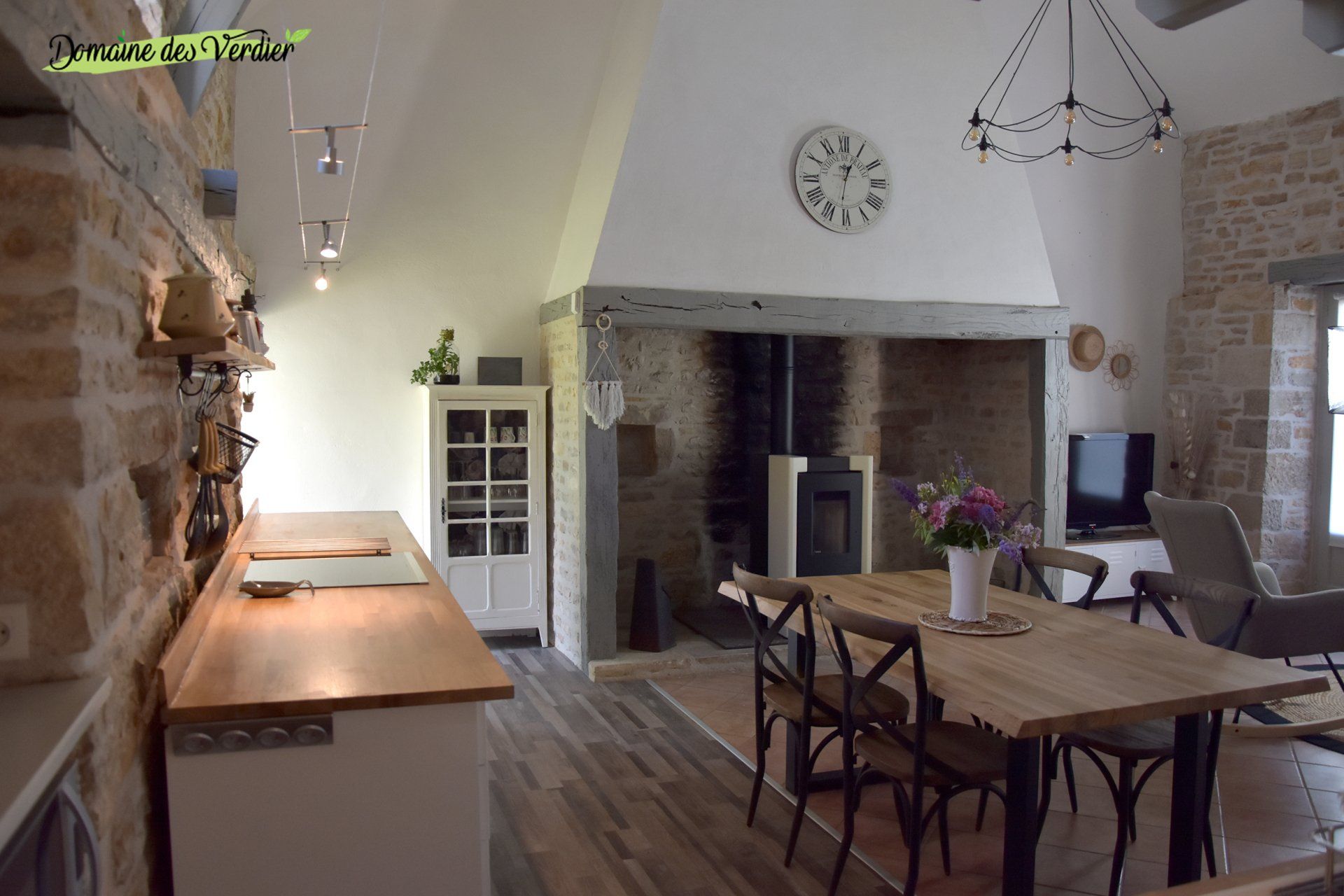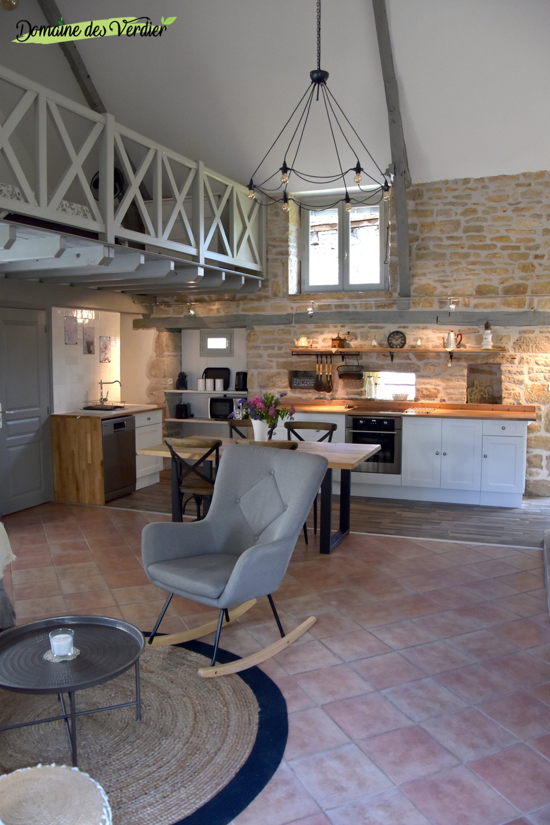 Dès l’entrée, le salon cathédrale impressionne par ses volumes et sa luminosité. La pierre apparente, les poutres d’époque et une décoration soignée dans un esprit campagne chic créent une atmosphère chaleureuse, élégante et authentique. Chaque détail a été pensé pour votre bien-être.