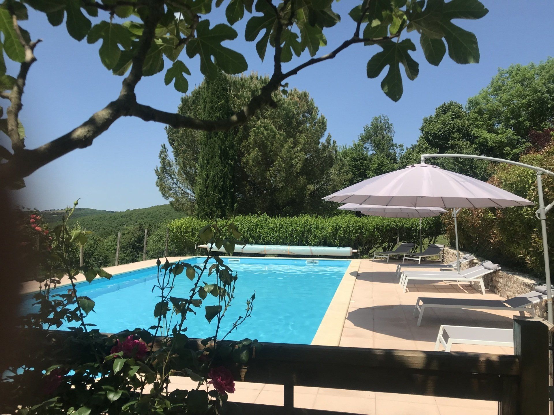 Vous avez accès à la piscine partagée (avec nous uniquement) qui se trouve à 30 mètres, dans un écrin de verdure et sans aucun vis-à-vis.